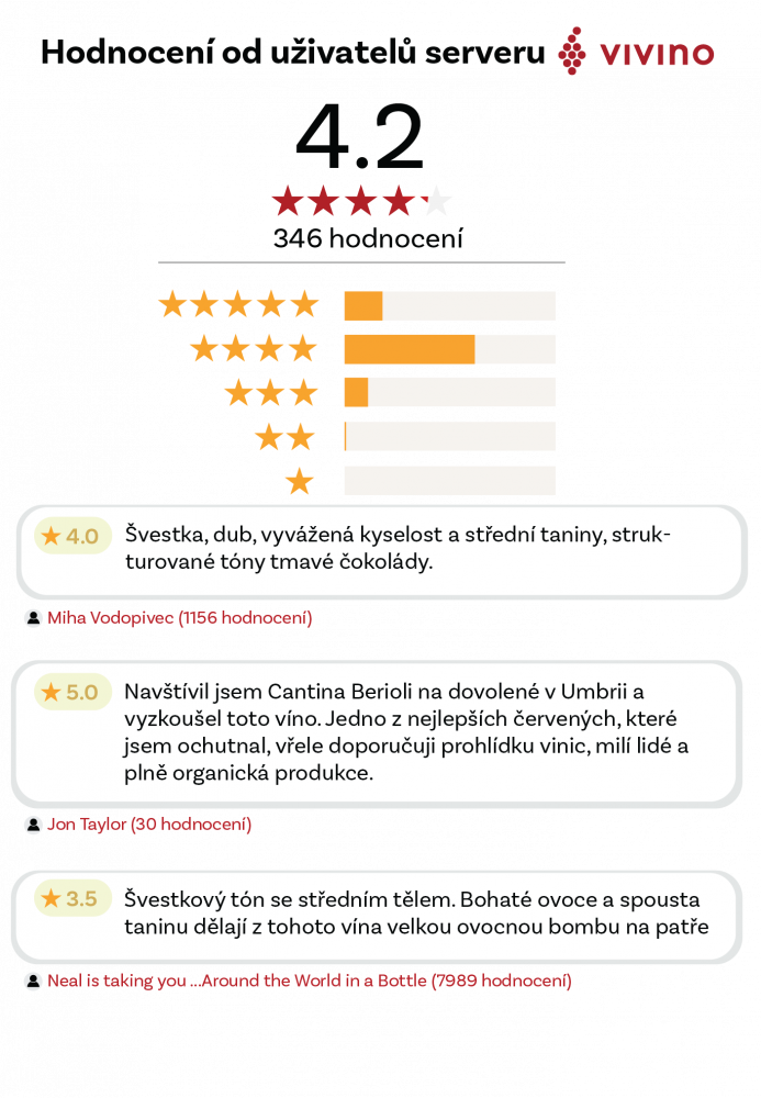 "Colli Del Trasimeno" Merlot Riserva - Cantina Berioli: Červené víno vyráběné z modré odrůdy Merlot. Sklizeň se provádí výhradně ručně na vinicích s převážně vapenco-jílovitým podložím. Fermentace v ocelových tancích o objemu 50 hl při řízené teplotě s využitím přírodních kvasinek. Dlouhý kontakt slupek s moštem, umožňující extrakci barvy, tříslovin a chutí.